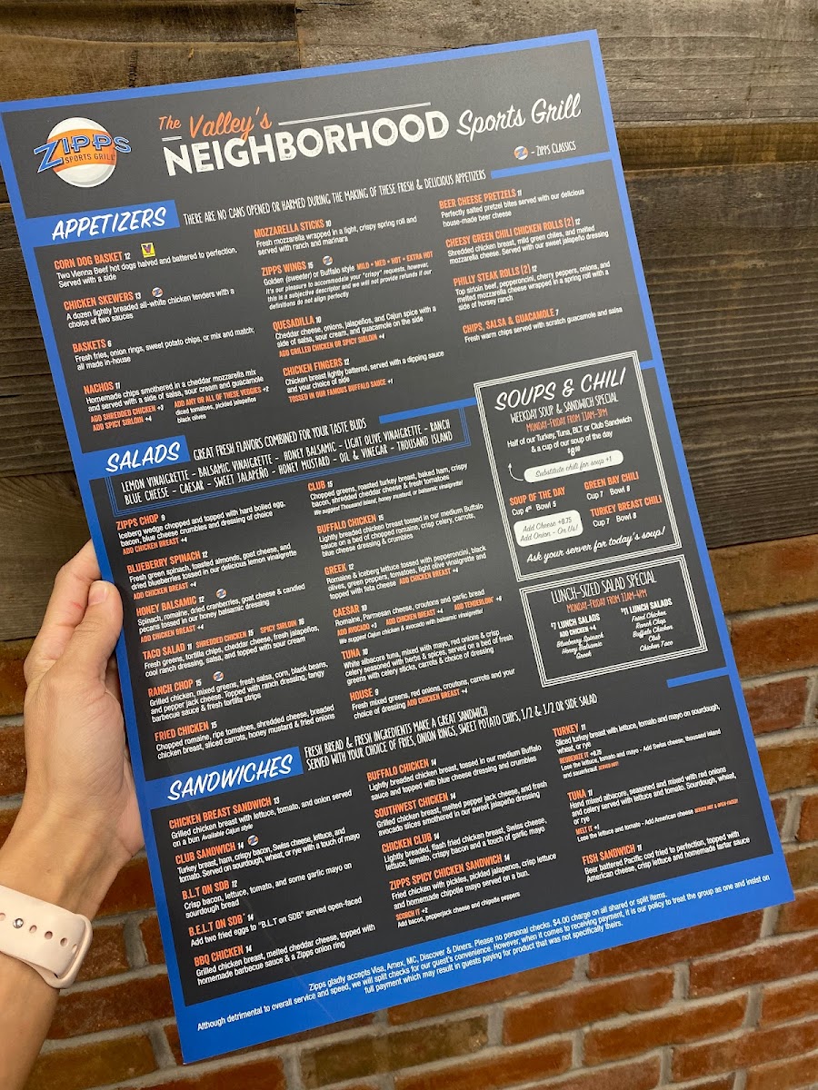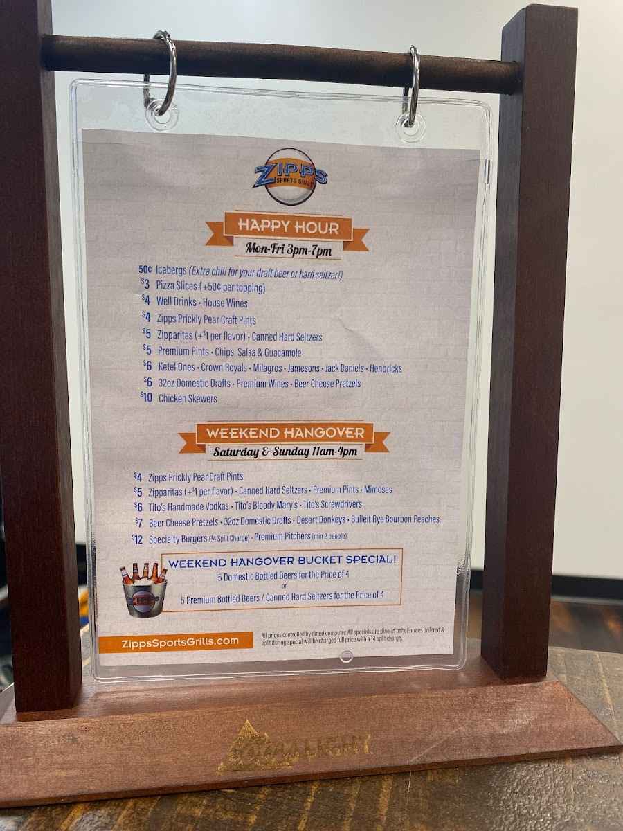 Zipps Sports Grill Glendale Menu